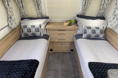4 berth caravan with 2 fixed single beds and a lounge that coverts to 2 bed