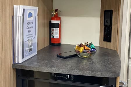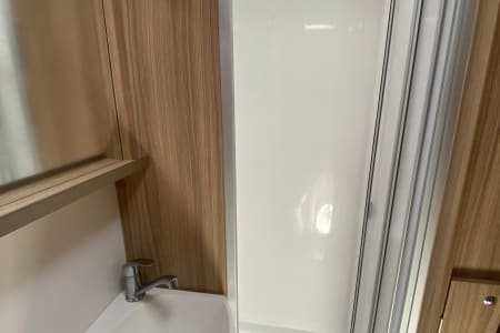 Lovely 4 berth caravan. There are 2 fixed single beds permanently made up in the rear of the caravan and a lounge which can convert into 2 single beds. There is solar panel, fully equipped kitchen with a microwave and fridge, heating and hot water, and separate shower and separate toilet in a roomy ensuite. The caravan can be operated off grid with gas heating, fridge and hot water options. The caravan has a braked weight of $1410 kgs.