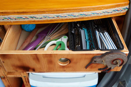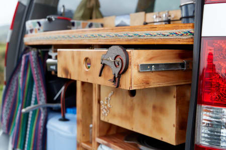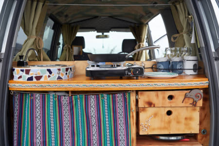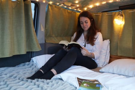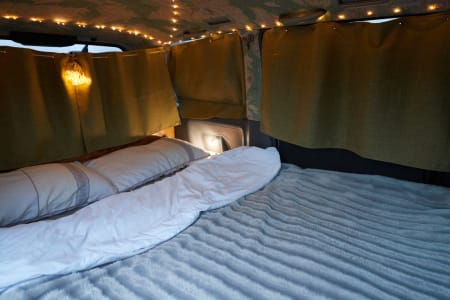 Fall in love with the cosy touches of our very first Generation Sleepervan, it comes with a fully equipped kitchen with hand pump and electric cooling box. Portable foot pump pressure shower included! Get off the beaten track and make sure you never run out of battery with a solar panel attached to the roof and the possibility to charge your Laptop (Pure Sine Inverter).