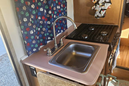 Our tiny Rv is the cutest small motorhome you can find to rent. This Little fella is the perfect size for a couple or small family for long weekends or for an extended vacation. It features a queen size bed in the rear, a bed over the cab and the dinette folds out for a bed. A strong air conditioner in the drivers cab and the main area keep this coach cool during the days and a propane furnace warms it up quickly if it is chilly at night. With a powerful Chevrolet engine, this coach is easy to drive and is fully contained. If you are looking for a quaint vehicle to just get you where you want to go, our traveling home may be the perfect fit for you.