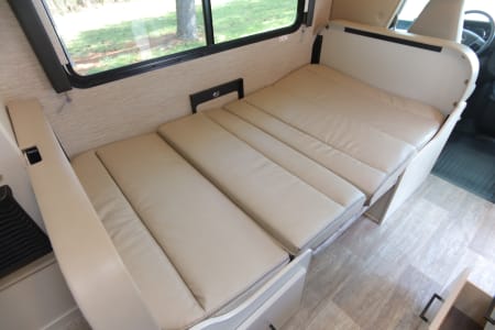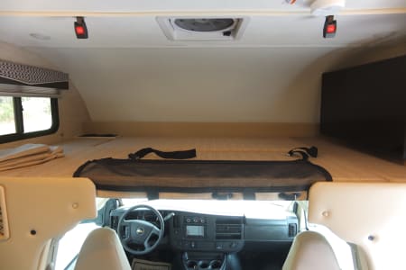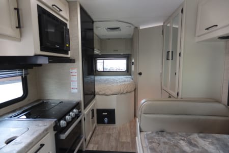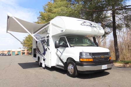If you wish to escape the hustle and bustle of everyday life with your favorite people then check out this motorhome! Everyone will have a comfortable place to sleep between the rear corner 54" x 80" queen bed, the 52" x 96" bunk over cab with a 40" TV on a swivel for entertainment at night, and even the 76" Dream Dinette can transform into an extra sleeping space. Store all of your essentials in the closet just outside the rear corner bathroom which has a 24" x 36" shower and keep your perishables fresh in the refrigerator. Experience a smooth ride to each destination with the Ford E-Series chassis on these Thor Motor Coach Chateau Class C gas motorhomes! They are constructed with a welded tubular aluminum roof, sidewall cage construction, vacu-bond laminated roof, walls, and floor with block foam insulation to keep the heat and air conditioning inside. The slick fiberglass exterior with graphics package is sure to turn heads down the highway too. Come find your favorite one today and get on the road!