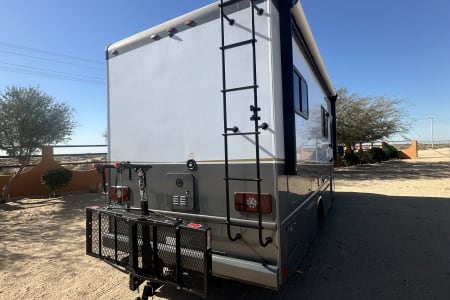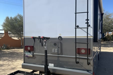 2 TVs, 2 dvds, rear view camera, sleeps 6, outdoor shower, Onan LP generator,1.5 ton A/C unit, towing hitch with 2 bike rack system and exterior box storage. Self sustaining rig!