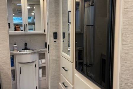 New Ultimate Luxury 2021 Thor Gemini Class B+ This fabulous unit is AWD, navigation, all the bells and whistles. A dream to drive at 23.5 feet! Fully equipped kitchen with refrigerator with freezer. 2 burner cook top, convection/microwave oven, Plates , bowls, knifes for, spoon, glasses all included. Queen murphy bed with fresh linens, full bathroom with large shower lots of storage, bath towels and beach towels also included. couch, indoor dining table, outdoor shower, televator, winegard antenna, AC, heater, whole coach generator, heated tanks, awning with lights, instant hot water heater.