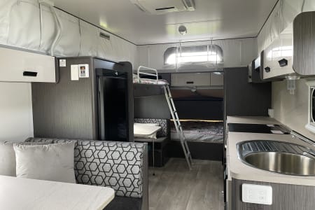 This caravan is the largest in our fleet, providing heaps of space for up to 8 with bedding for 4 Adults and 4 kids!