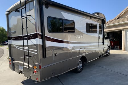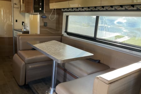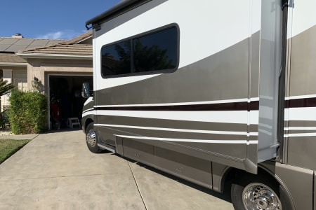 The 24J floor plan features a 50″ x 79″ corner bed in the rear of the coach, convertible U-Shaped Dinette, and Cabover Bunk that provides sleeping accommodations for up to 4 people. Like the other floorplans, the 24J has a black and grey tank capacity of 41 gallons but the freshwater tank is larger with a capacity of 37 gallons. This rig is packed.with high=end components Equipped with propane generator, stove, and water heater. Microwave/oven is also available.