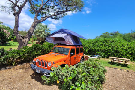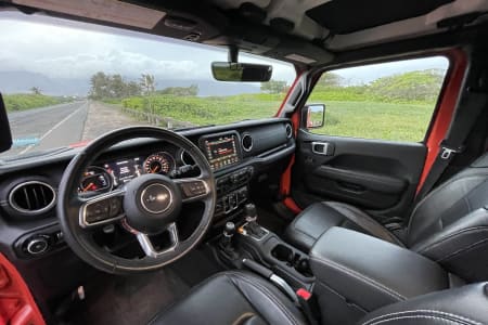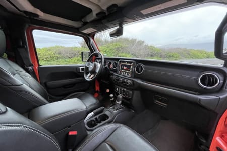 The Freedom Panels above the front seats pop out for optimal island-cruising, perfect for the Road to Hana. Don't limit yourself to only seeing out the window, the waterfalls aren't meant to be missed!
