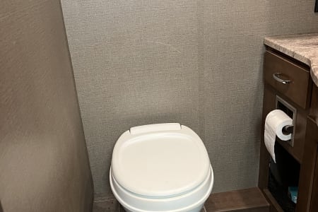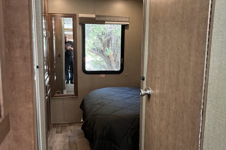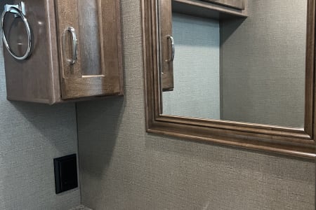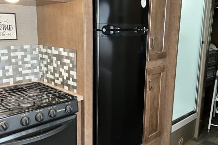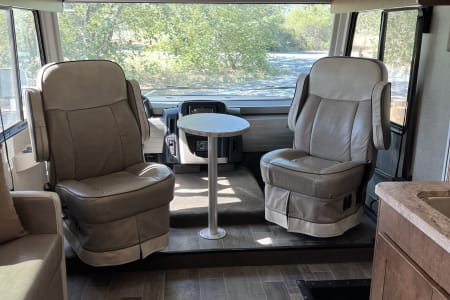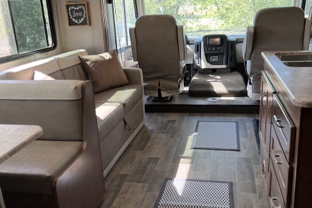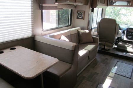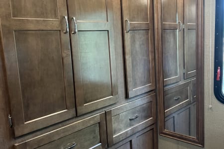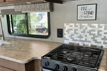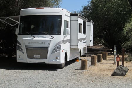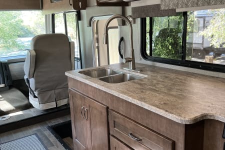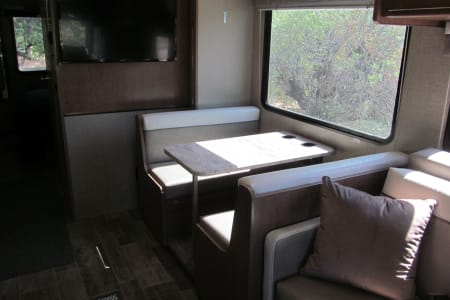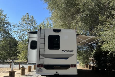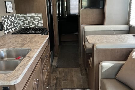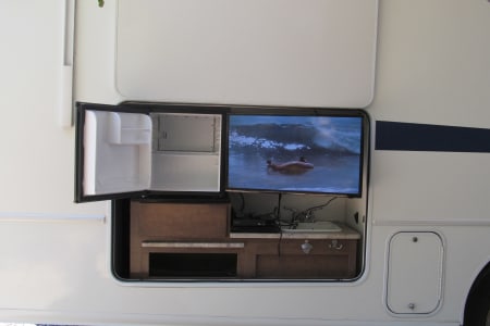 We purchased this beautiful RV so that we could have more opportunities to make memories with our family. It is a great way to see the country and have all that is needed right at our fingertips! It sets up easily with the automatic levelers, the awning gives a large amount of shade and even has LED lights built in for at night. There is an outdoor entertainment center complete with a TV, DVD player and a small refrigerator.