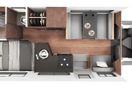 This economical family unit is a traditional favorite for those who want the walk-through convenience of a motorhome.