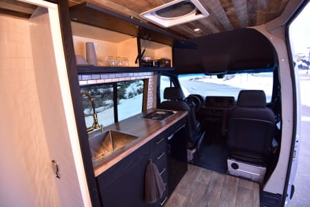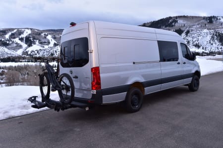 This is a brand new Mercedes Sprinter Campervan featuring a custom professional conversion, fully equipped with a queen-sized bed, sink, refrigerator with freezer compartment, gas cooktop, shower (hot water), table seating for four, ventilation, heater and powered by solar panels and propane. Storage underneath the bed and in cabinets. Centralized control panel easy to operate. This diesel van is tons of fun to drive and gives you lots of opportunity to explore the open road going out to the desert (from Avon, CO) to Fruita (149 miles), Moab (249 miles), Eagle (20 miles), Sylvan Lake State Park (35 miles) and other mountain biking or camping destinations i.e. National Parks, BLM, and so much more! You're not just renting a van, you're renting an experience. Enjoy!