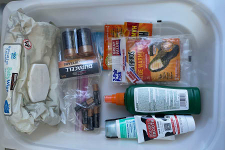 The trailer is equipped with a storage locker for extra storage, a 105 Ah lithium ion battery, a 3-gallon propane tank, and holds 18-gallons of water.