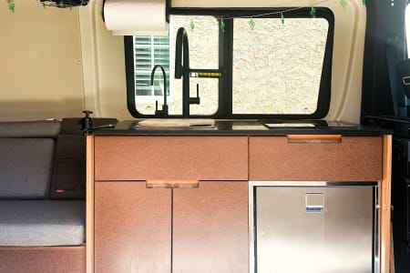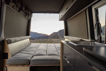 The Astro Camper is a professionally upfitted 2021 Mercedes Sprinter Van, that blends comfort with adventure on a 144” Mercedes-Benz platform. This $160,000 project transforms the Sprinter into a luxurious camper van, complete with a U-bench and dinette accommodating four people and converting into a full-sized bed. It boasts a sink, induction stove, refrigerator/freezer, ventilation, heater, and ample secure storage for adventure gear.