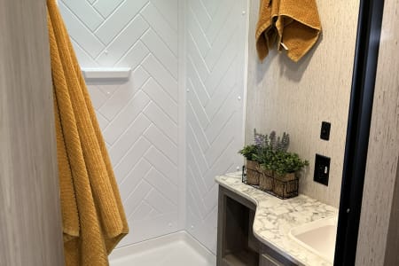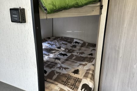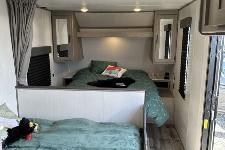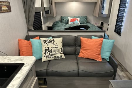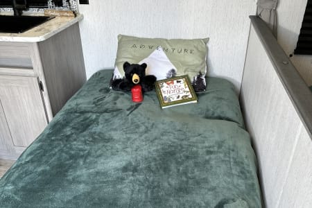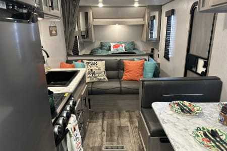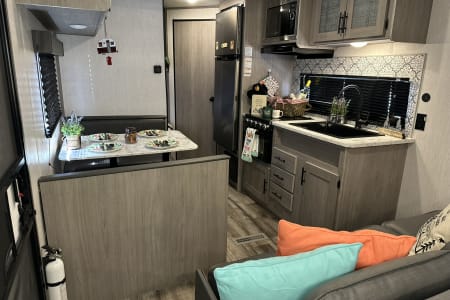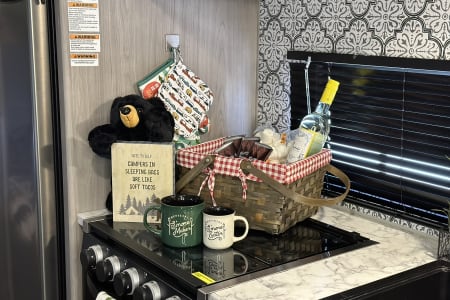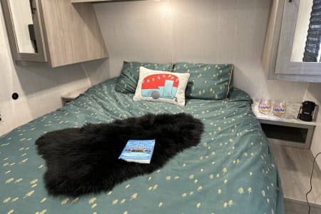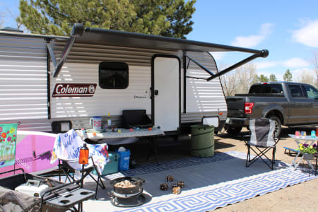 Bluetooth entertainment system with exterior and interior stereo speakers, power retractable awning with LED lighting, stove/oven, interior fridge/freezer, coffee maker, heating and AC, indoor and outdoor shower, multiple USB ports, specific RV toilet paper and black tank treating chemicals. You can add on 2 adult kayaks for $50/day