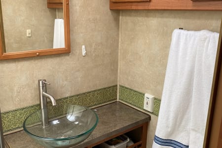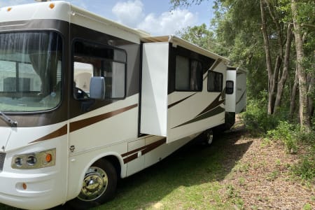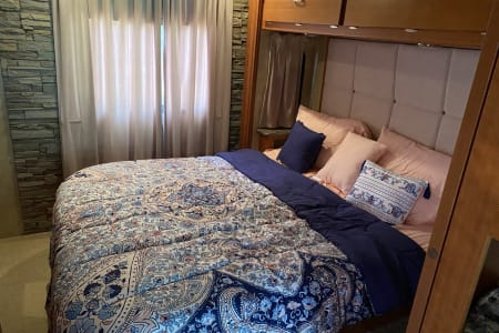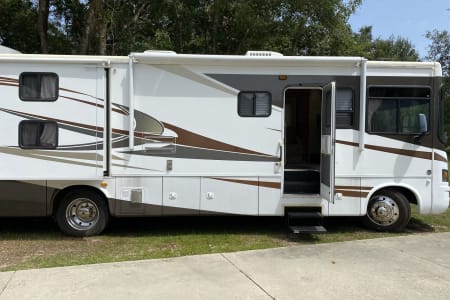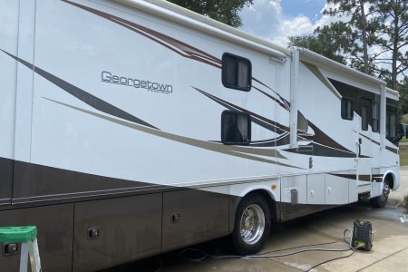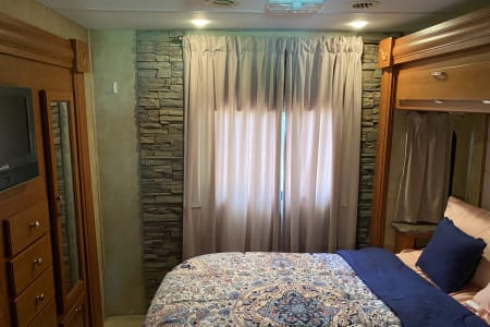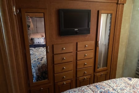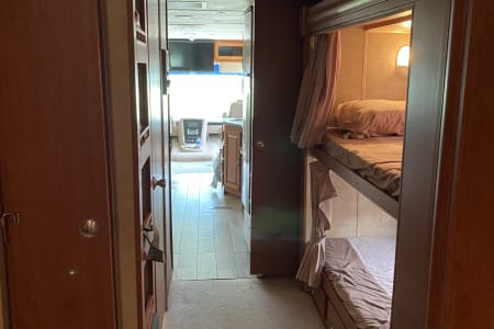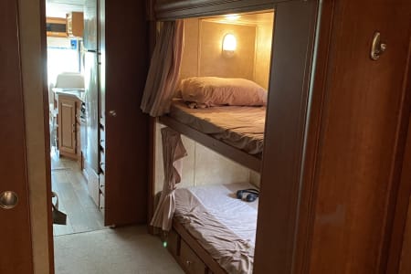 It has many upgrades like a new sofa bed that sleeps two. It has a new smart TV with surround sound with DVD player. The bunk beds have DVD players being upgraded soon. It has storage space with portable outdoor grill,tables chairs and much more. It has a emergency first aid kit bag fully loaded with medical needs. Two brand new ac units with heating and fans. Three slide outs for plenty of room and comfort. Indoor and outdoor portable shower. Plus much more. Queen size master bedroom with TV, gas stove, microwave, hot water heater, powerful generator. Plenty of inside and outside storage space.