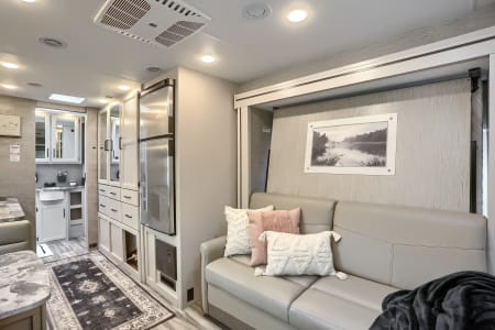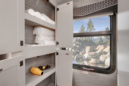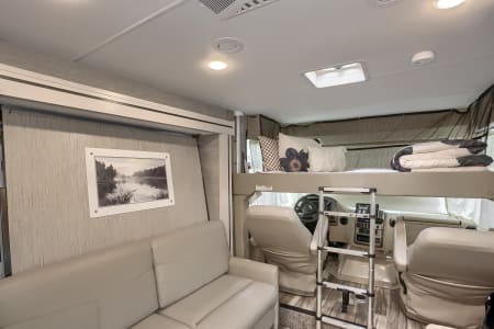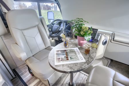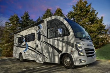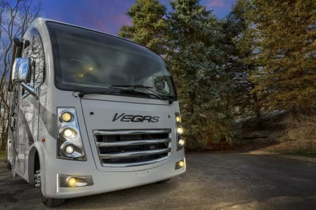 You'll find excellent drivability with the Thor Motor Coach Vegas Class A gas motorhome! This RUV (Recreational Utility Vehicle) has been built intentionally as a short Class A RV on a Ford E-Series chassis with the Godzilla engine. They allow you to set up camp easily thanks to the Rapid Camp+ multiplex system, your all-in-one control center. You won't have to get up while you're outside relaxing when you want the power patio awning to extend because you can open it with a button or on your phone (Download the app). If you hook up a grill (Blackstone 22" for rent) to the external LP connection, you'll also have a place to cook outdoors and a 100W solar panel for all your off-grid adventures.