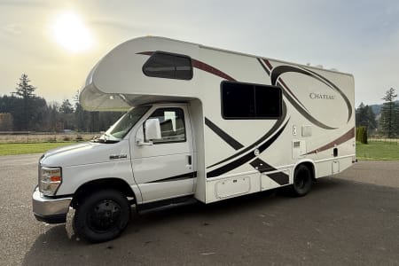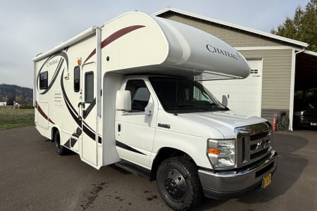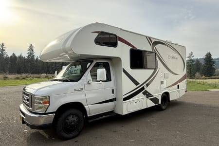 Plan your dream trip, in this family friendly 24' Class C RV. Perfect Size for every couple and family! Like New, hardly used. Sleeps up to 6. Private Queen bed in rear. Queen overhead bunk. Dinette makes into beds also. 15' Electric awning!