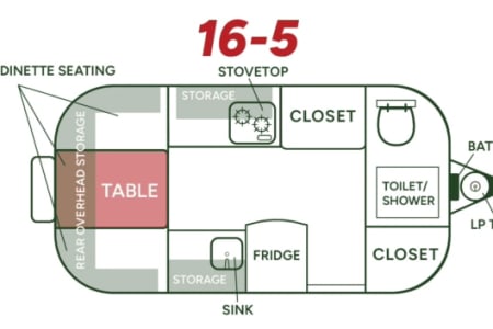 * A rear dinette that converts into a full-size bed (sleeps 2)