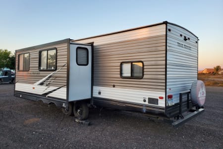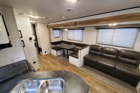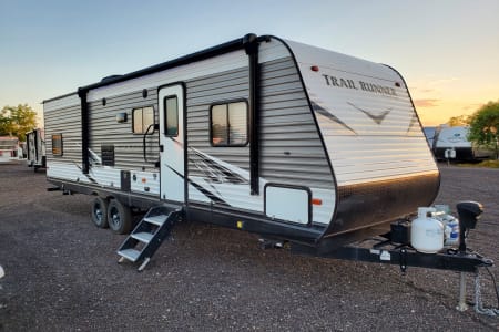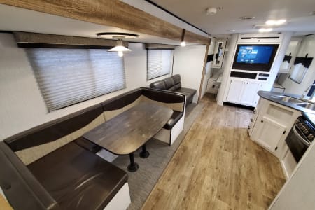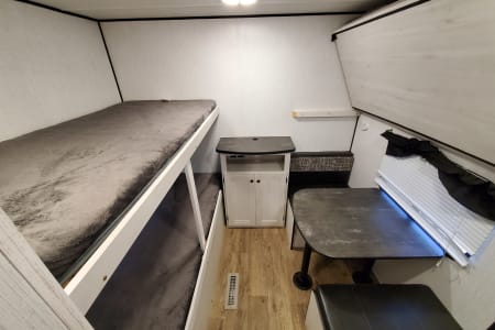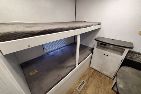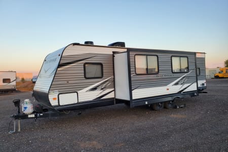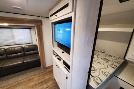2021 Heartland Prowler 30 USB h. This is a 31 ft bunk room trailer big enough for the whole family. Trailer is 6700 lb dry so it can be towed with a half ton truck or suv. Rear bunk room has four individual bunks. One of the lower bunks converts to a second dinette seating area. Main Lounge area has a deep slide out with couch and second dinette. Full kitchen and full bathroom. Front private queen bedroom with lock off doors. Electric stabilizing Jacks and tongue jack. 20 ft Electric awning. Bluetooth stereo with indoor outdoor speakers. 32-in roku Smart TV. Ducted AC and heat furnace. Nice lighter interior. Weight distribution hitch and Generator available. Damage deposit required. Special event pricing and holiday rates may vary.