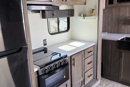 - **Private Bedrooms**: Our travel trailer features a private master bedroom with an additional 2 queen size bunk beds in the rear.