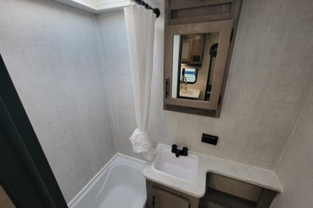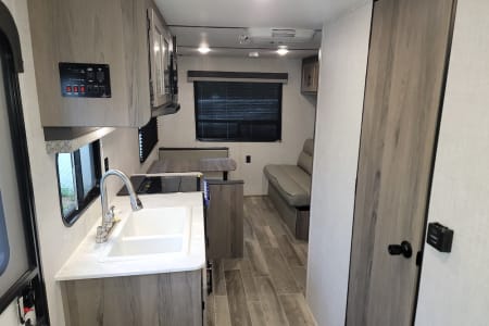 This RV is perfect for couples or a small family. This trailer that can sleep up to 6 people. This unit is 25 ft long and weights 4,064 lbs. The hitch weight is around 530 lbs. This unit can be towed behind a SUV or pick up. We provide a weight distribution kit with sway control with this rental. We also provide 20 foot sewer hose, 2 water hoses, 30amp to 50 amp converter, broom, trash can, floor mats, a 5 foot outdoor folding table, a 9x12 outdoor area rug, 4 beach chairs and toilet paper to get you going.