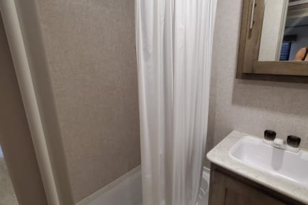Private bathroom with shower tub.