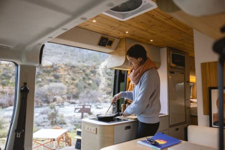 Meet Georgie, the ultimate off-grid adventure van. This van was designed specifically to provide renters with the comforts of home while on extended road trips during any Season.