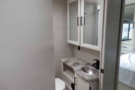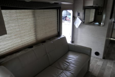 The refrigerator, heater and water heater will run on either propane or electric. The on board generator runs off of the gas in the 55 gallon tank. TV's in the living area and master bedroom. Lots of storage area.