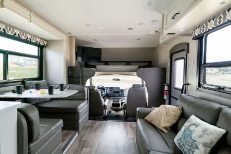 This meticulously maintained 2022 Jayco motor coach has a comfortable layout for couples or the whole family. The sleeping options include a queen bed, two bunk beds, pull out couch, dinette, cabin bunk. It is decked out with a farm house style interior, modern kitchen, and spacious bathroom that will make you feel right at home! TV, board games, grill, and camping chairs, are also included to get your adventure started!