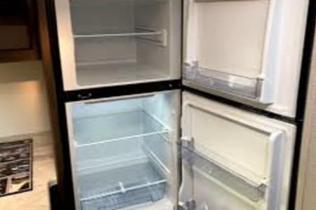 How about this!! You schedule a grocery delivery to us on the day before departure and we'll stock your pantry! 12V refrigerator runs off the solar panel.