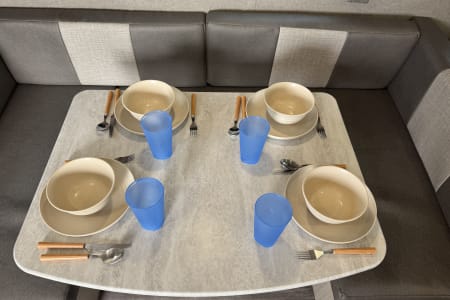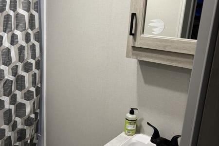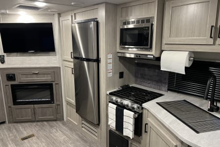 A new 2024 with double bunks, a queen, a pull-out couch, and a dinning area converts. Inside and outside shower and cooking area. Fireplace, inside and outside speakers. Dining utensils for 8, all mattresses in covers. Delivery only, no customer transportation. You make arrangements and pay for the location.