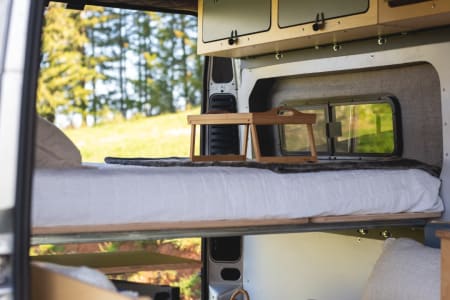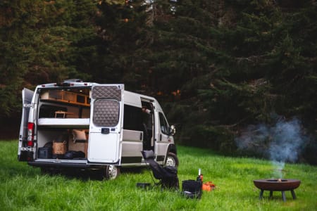 Ready for your next adventure? This camper van is a tastefully equipped, comfortable van designed for easy living on the road. This conversion transforms the RAM ProMaster 159" high roof into a cozy mobile home.