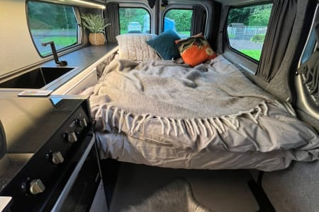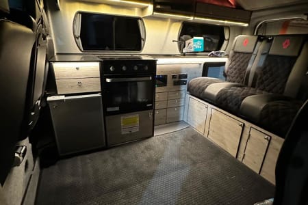 Get ready to roll in style on your next Coddiwomple adventure with this one-of-a-kind, high-spec 4-berth camper that's as unique as your journey. This bespoke beauty features chic pine taupe cabinetry with sleek black edging, paired with a luxurious black Hanex worktop that screams sophistication. Inside, you'll find full insulation and a Rib130 bed with ISOFIX, along with adjustable black Alcantara-trimmed seats and matching vinyl fronts for the ultimate in comfort. Pop up the roof to reveal a cozy double bed, and swivel the front passenger seats to transform the space into a versatile living area.