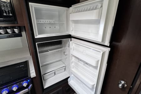 - Fully Equipped Kitchen: Whip up meals on the go with a 3-burner stove, oven, microwave, and large refrigerator—perfect for off-grid or campsite cooking.