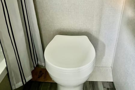 **We have never used the black waste tank since we use the Cuddy Lite composting toilet. It keeps liquids and solids separate which prevents odor. You will save many gallons of fresh water, enjoy an odor free rig (really : ), avoid harsh chemicals, and never have to find a dump station or touch germy hoses! Liquids go into an easy to empty container with an indicator light showing when full, solids and composting pellets go into a biodegradable bag then any trash can.