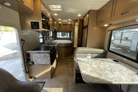 Step into comfort and adventure with our easy-to-use Thor Chateau! Whether you're chasing sunsets or looking for a cozy family getaway, this Class C RV has everything you need for an unforgettable road trip. With spacious sleeping for 5, a comfortably equipped kitchen, and modern amenities like air conditioning, a flat-screen TV, and ample storage, you’ll feel right at home wherever you roam.
