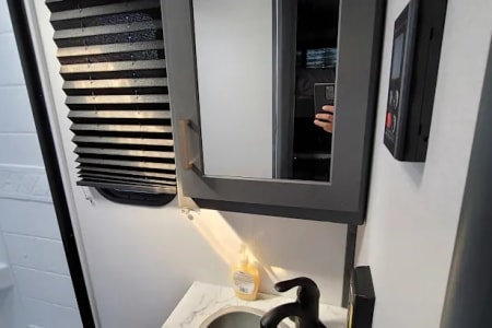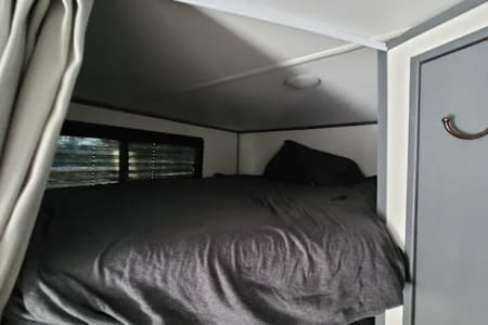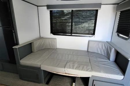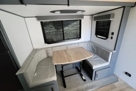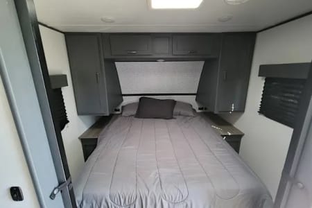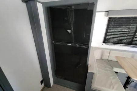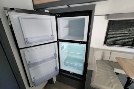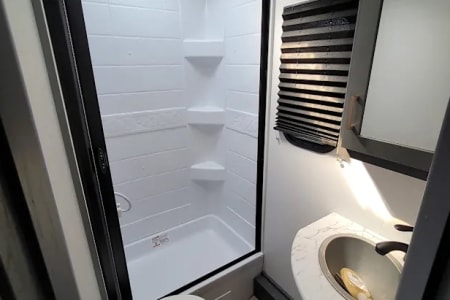 Outdoor amenities that set this model apart: an outdoor mini fridge, and cooking burners lets you enjoy chilled beverages and fresh meals under the stars. The convenient outdoor shower is one of our favorite features- you can use it to rinse off or even take a nice hot shower with good water pressure.