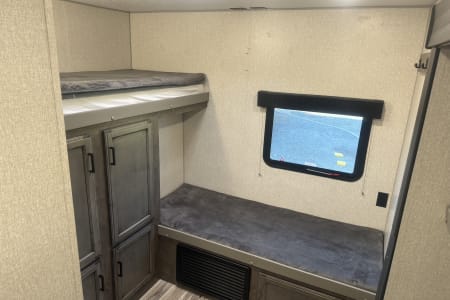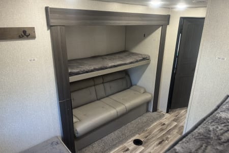 • Room for Everyone: With sleeping accommodations for up to 11 people, this RV is ideal for family vacations or group trips. Featuring a queen-size bed, bunk beds, and convertible sofa beds, there’s space for everyone to rest comfortably.