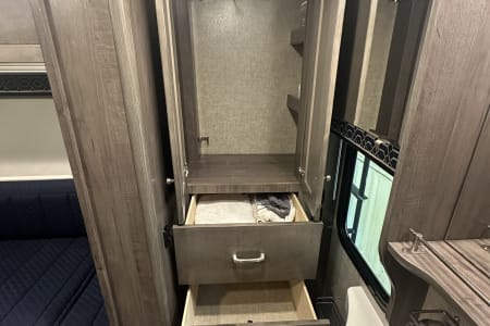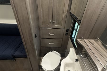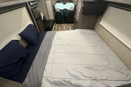 This RV is the perfect size for traveling. It is built to a very high quality and is much nicer to drive and live in than other class C RVs. It is not too wide and drives like a large van. It has low mileage and is very clean! Roomy inside, but small enough to get to where you want to go. It has lots of storage and features, simple to set up (sewer kit and water hoses included), and the perfect size for all your destinations. It sleeps 4 with a main bed and a couch that makes out into a bed.
