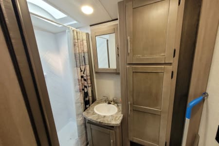 Spacious Pantry & Ample Storage: Store all your food, snacks, and essentials in the generous pantry and numerous cabinets throughout the trailer.