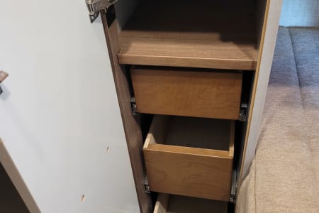 The View has a diesel generator and solar to camp off grid. There is a convection oven microwave and a two-burner stove top. The kitchen is fully stocked for 4 people and has 2 TVs for viewing in the living and bedroom area. The single beds in the back can be made into a California King-sized bed. (one or the other is a choice) Just let us know what size bedding you would like us to pack for you. There is an over cab bunk bed, and the sofa pulls out to make a bed as well. The View sleeps 4 adults comfortably or 2 adults and 4 children.