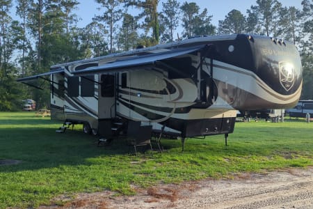 Spacious and elegant, this beauty has 4 slide-outs, 2 separate sleeping areas, 1 ½ baths, and power everything. Avoid the usual inconveniences of camping so you can focus on building great memories with your family. Have a shower while running the washer and have hot water to spare. You may temporarily forget where you are until you smell the ocean air and feel the sun on your skin again, but you'll be camping in style, sitting in a comfy chair on the back deck having a great cup of Joe.