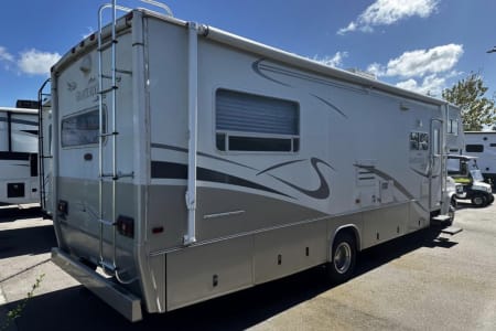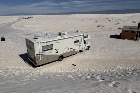 all the beds are included in the pictures. Two person over the cab, two person dinner table turns into bed, two person couch turns into bed, queen bed in the back. Shower, Toilet and full kitchen.