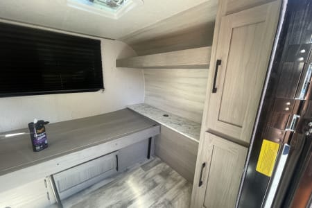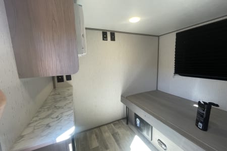 Room to sleep two people with the sliding out bed extension turning a twin bed into a full/queen bed.