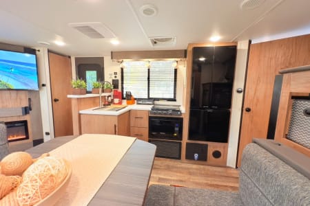 Leave your worries behind and enjoy the ultimate fusion of your home away from home and the perfect campsite for your adventures! Welcome to our beautiful rental camper, a 2025 Campsite Reserve 26CJ Travel Trailer, a modern marvel designed for adventure-seekers who crave comfort and style. Our travel trailer offers the perfect blend of luxury and practicality, featuring a sleek, aerodynamic exterior that stands out at any campsite.
