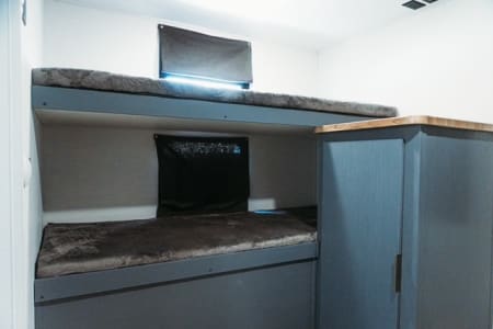 Ample sleeping space: Queen bed. Dinette and Couch conversion. Bunkhouse (4 bunks in the back) equals plenty of room to spread out.