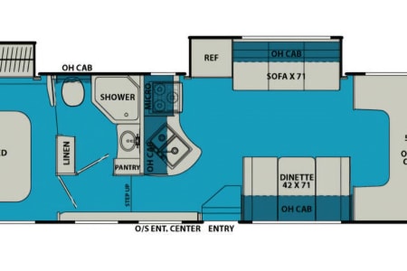 Sleeps 6 people comfortably. With a queen mattress in the back and a queen mattress overhead, along with a dinette that converts to a full sized bed. The pull-down television in the living space will make the trip a breeze for passengers as they lounge on the comfy sofa! No need to bring bedding - blankets, sheets and pillows are included.
