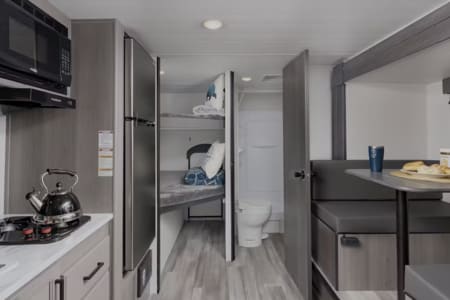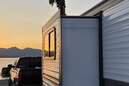 Escape to Lake Havasu in comfort and style with the Havasu Hideout. Perfect for lake trips, desert adventures, off road weekends and family getaways. This fully equipped RV rental is clean, easy to use and ready for your next trip.