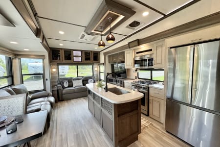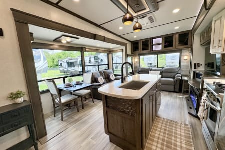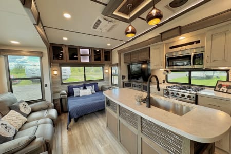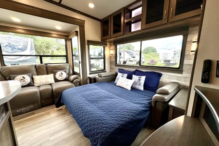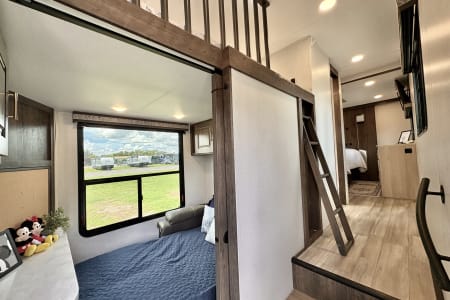 The 2021 Alliance RV Paradigm 390MP (fifth wheel) offers several sleeping arrangements, making it ideal for accommodating multiple guests or family members. Here are the interior sleeping details for this floorplan: