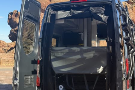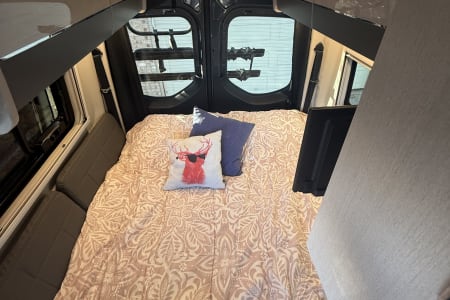 LUNO Bed for front seats converts into additional sleeping for 1 more.