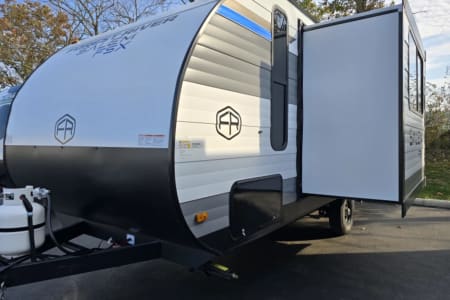 Beautiful, modern, bunkhouse travel trailer that will sleep up to 5 people. Great family unit. Super clean 2025 Forest River RV Wildwood FSX.