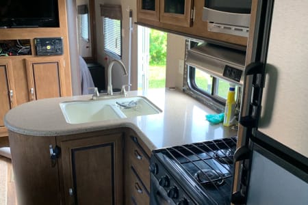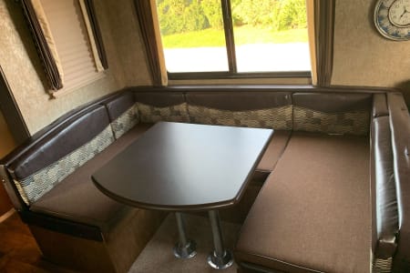 A little about this RV, It’s spacious, clean, pet and smoke free unit. Perfect for a family of up to four or five! It is a well equipped, high tech camper, glamping as it should be! It has an A/C unit for the hot days, propane furnace for the cool days and is fully insulated for those cool fall evenings! There’s nothing it can’t handle!
